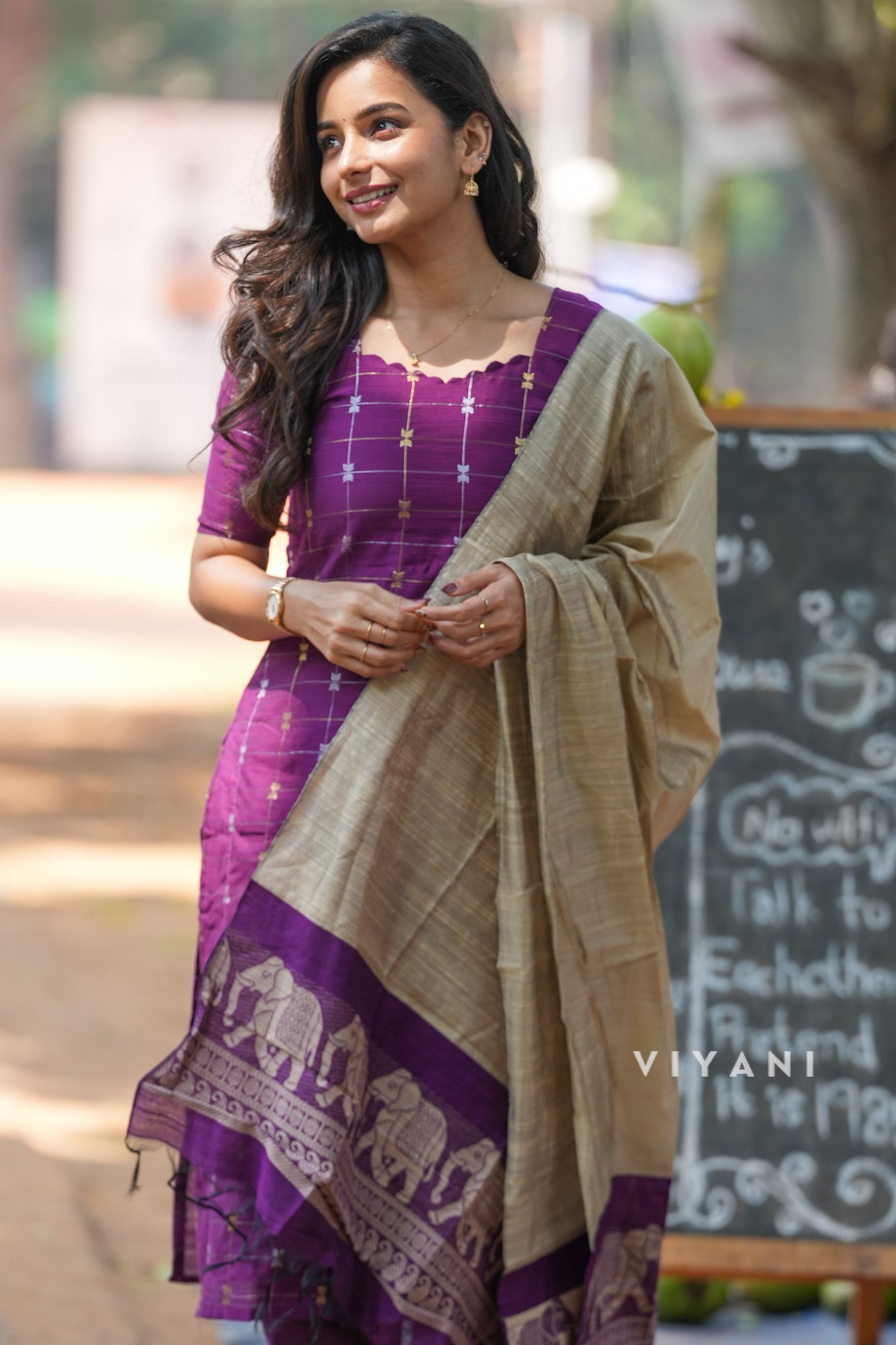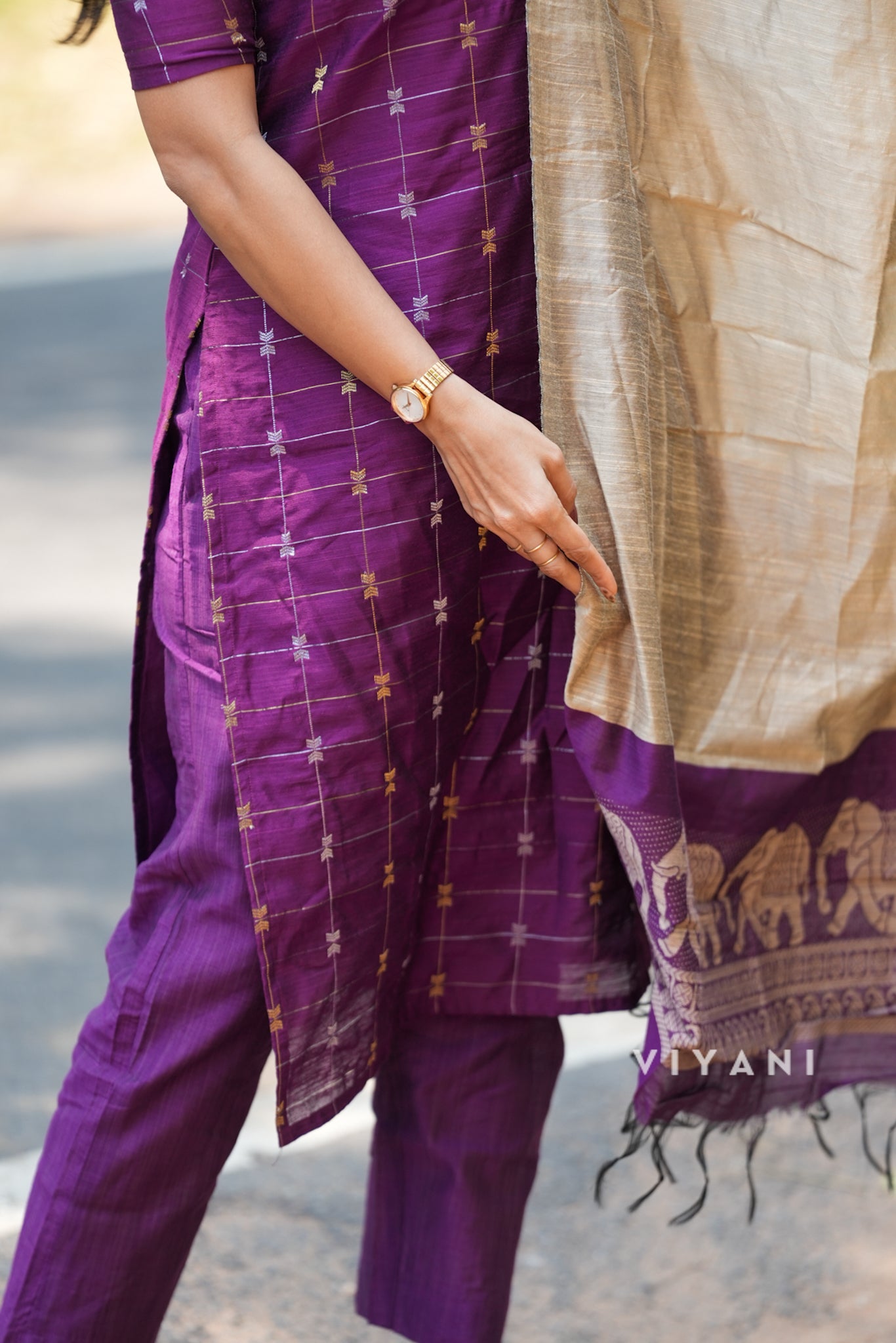 Deep Purple Checks Salwar sets - 3 Piece suit